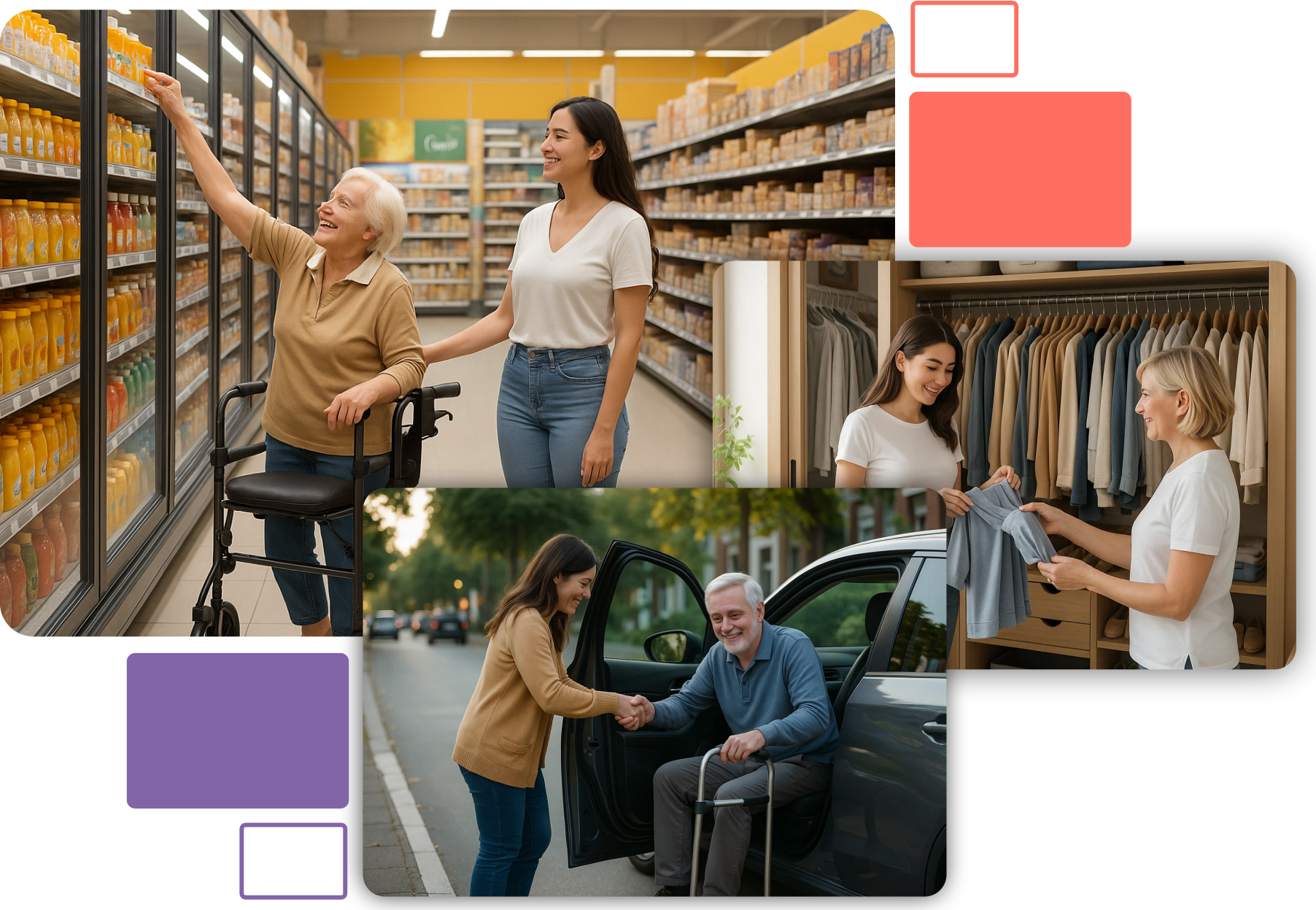 Acompanhe em compras, carregue sacolas e ajude a escolher produtos