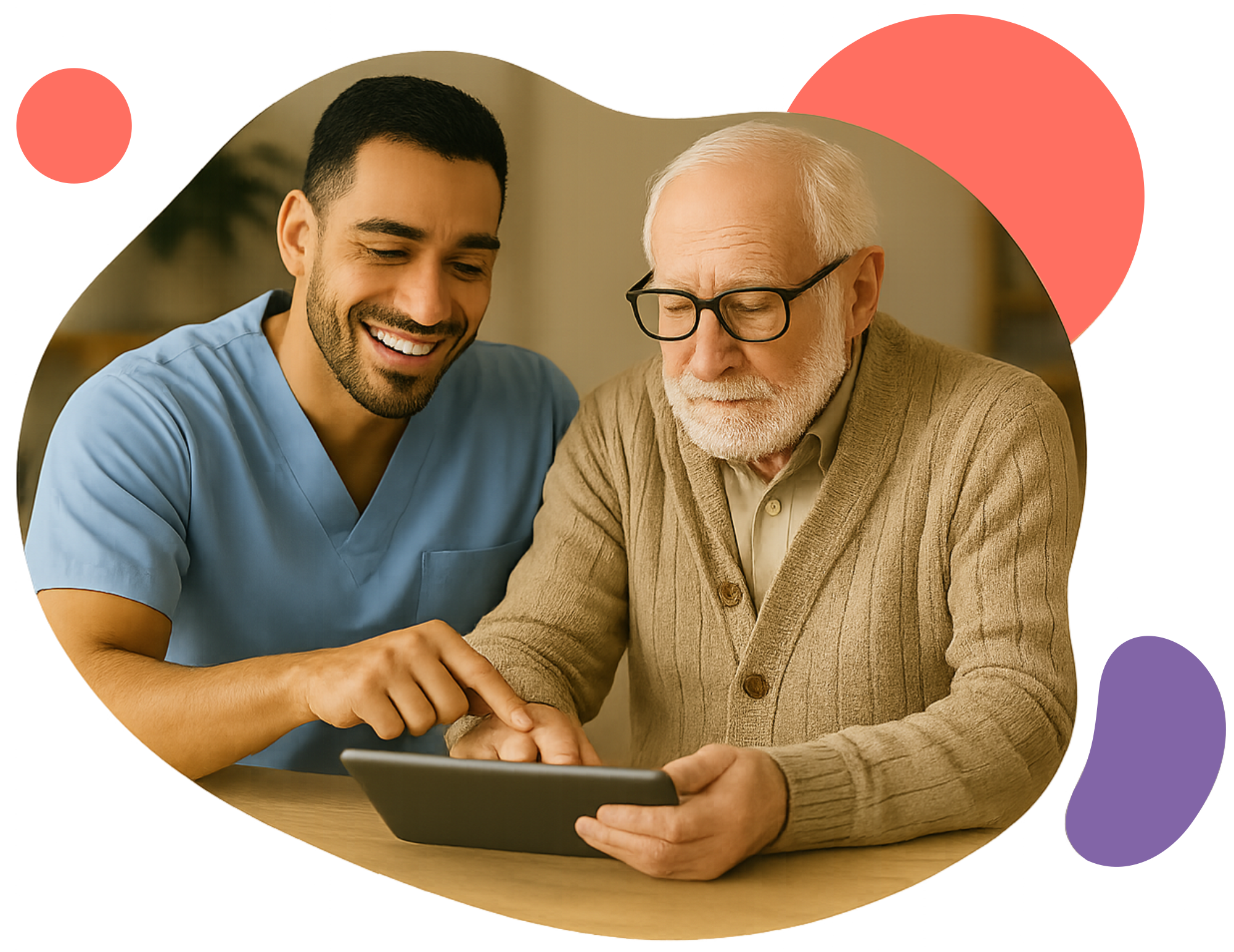 Ensine a usar apps, configurar dispositivos e acessar serviços online